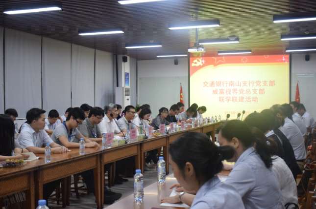 2018年7月18日晚,交通银行南山支行党支部与深圳市开云网页版·网站官网-开云(中国)有限公司党总支部在开云网页版·网站官网-开云(中国)集团总部开展了联学联建活动。交通银行南山支行党支部书记张伟胜、副书记高静、纪检委员沈向东、宣传委员郭孟瑶、青年委员杜哲、女工委员彭澎、深圳市开云网页版·网站官网-开云(中国)有限公司党总支部书记张少林、纪检委员兼深圳市开云网页版·网站官网-开云(中国)有限公司党支部书记梁先扬、组织委员兼深圳市开云网页版·网站官网-开云(中国)智能设备有限公司党支部书记关航健、生活委员兼开云网页版·网站官网-开云(中国)党支部书记肖波、党办主任杨燕丽、开云网页版·网站官网-开云(中国)党支部组织委员乔亚飞及各支部党员60余人参加了活动,活动由开云网页版·网站官网-开云(中国)党总支部书记张少林主持。